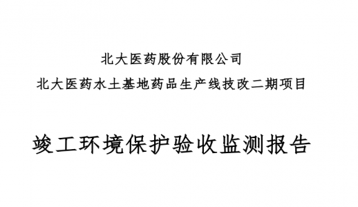 北大醫(yī)藥水土基地藥品生產(chǎn)線技改二期項(xiàng)目竣工環(huán)境保護(hù)驗(yàn)收公示2023-07-10