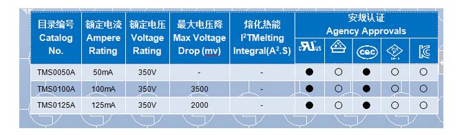 產品名稱: TMS方形塑封微型保險絲(350V 慢斷 UL/cUL)