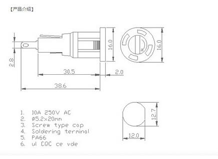 產(chǎn)品名稱: H3-54B(面板安裝) 保險絲座(引線式)|汽車保險絲座H(引線式)|保險絲盒(引線式)