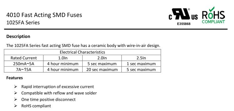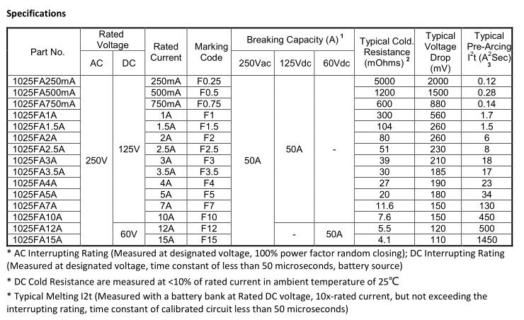 產品名稱: 1025FA 250mA-15A 250VAC125VDC
