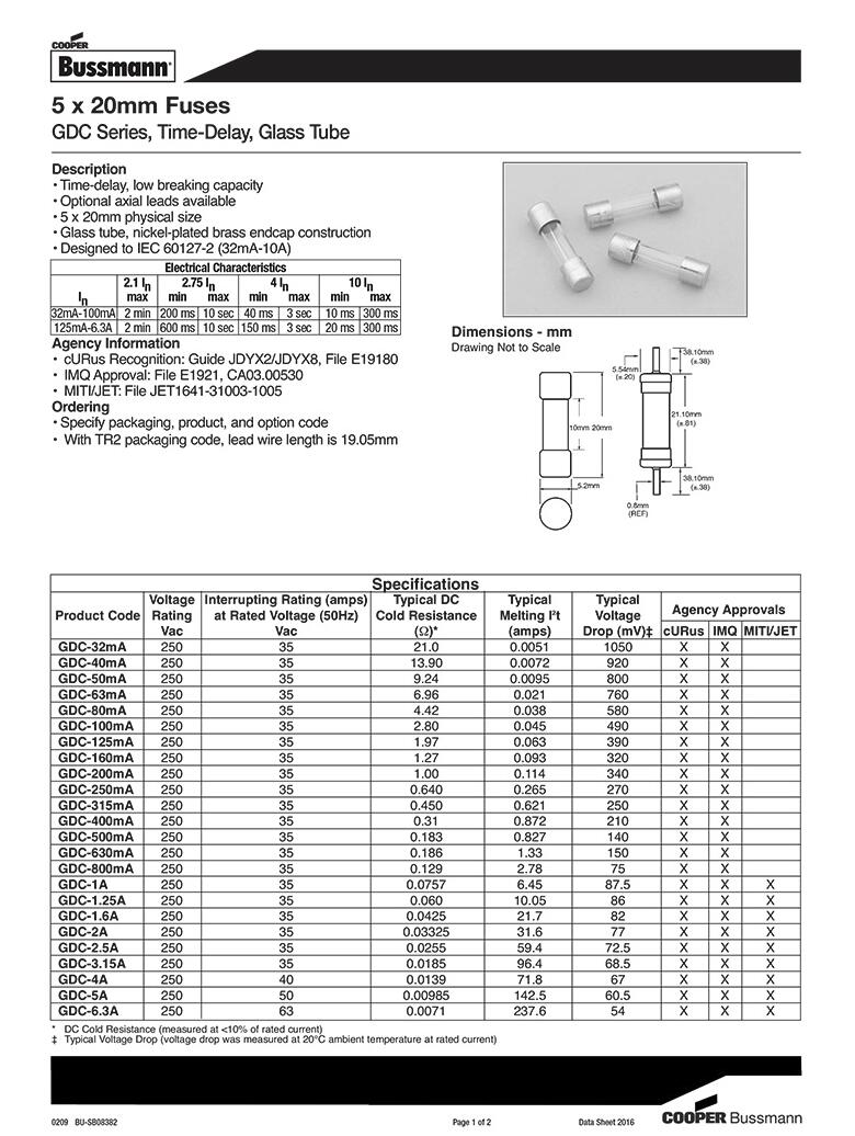 產品名稱: bussmann正品 GDC系列 玻璃管保險絲