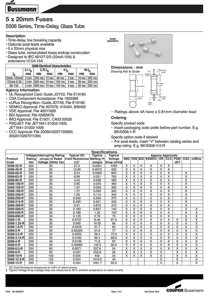 產品名稱: 灌沙保險絲 S506-15-R 玻璃管保險絲