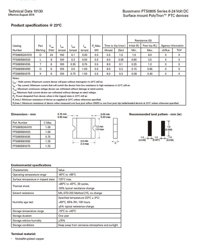 產品名稱: PTS080524V010 自恢復貼片保絲