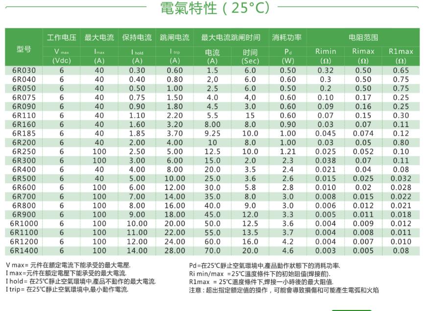 產(chǎn)品名稱: 6V自恢復(fù)保險絲