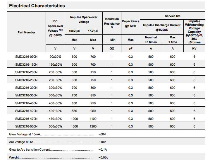 產品名稱: SMD3216系列陶瓷氣體放電管