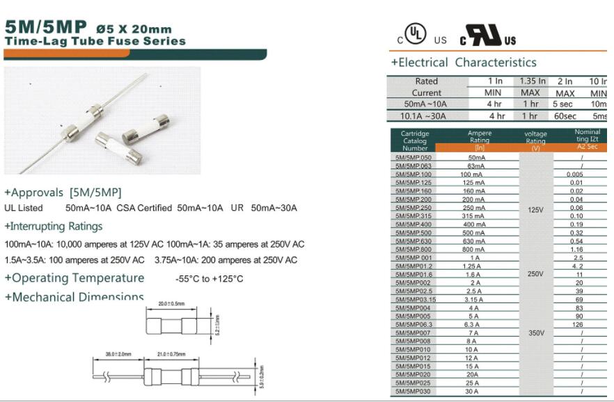 產品名稱: 350V 5*20慢斷陶瓷管保險絲