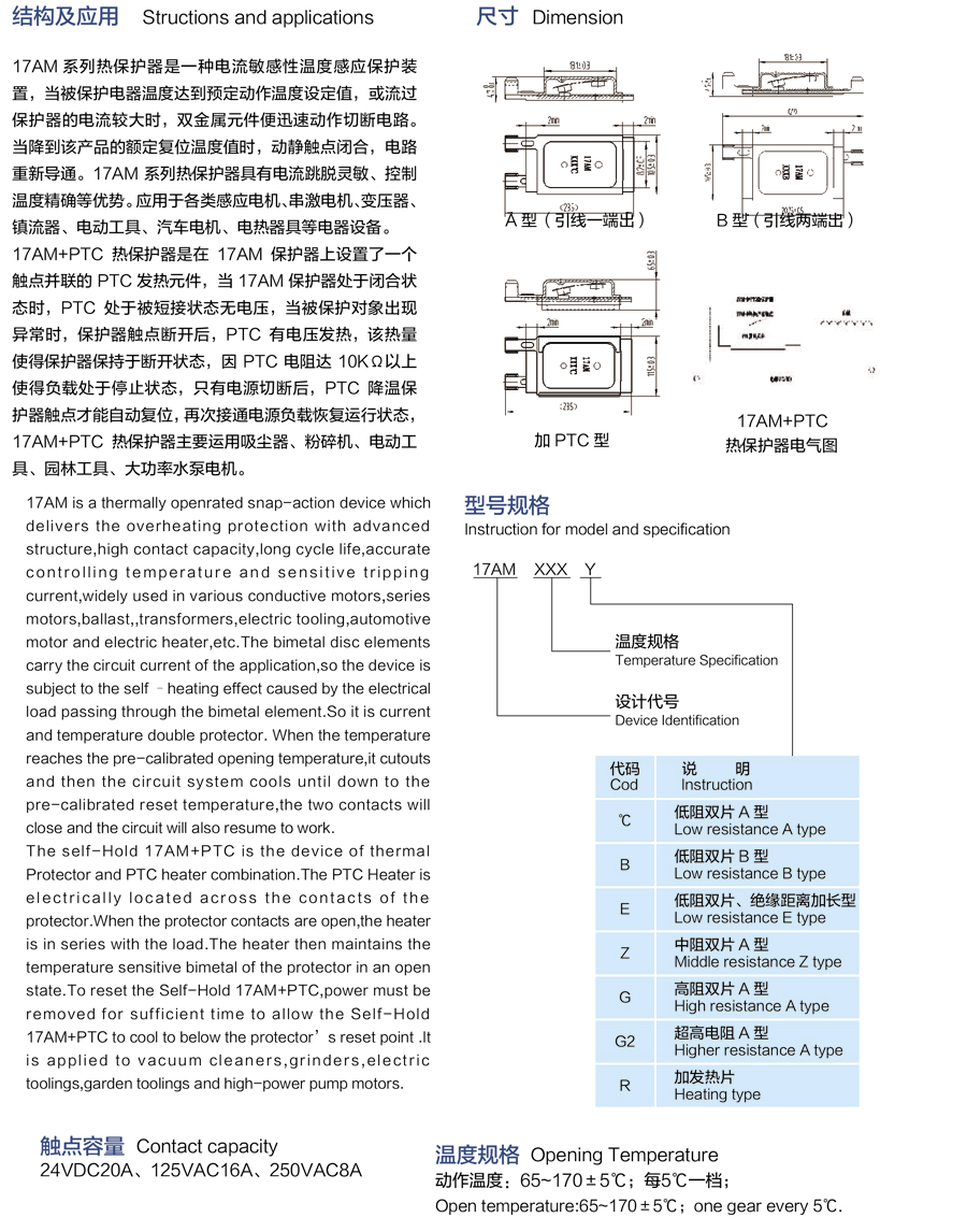 簡述: 17AM系溫控器 17AM series thermal protector