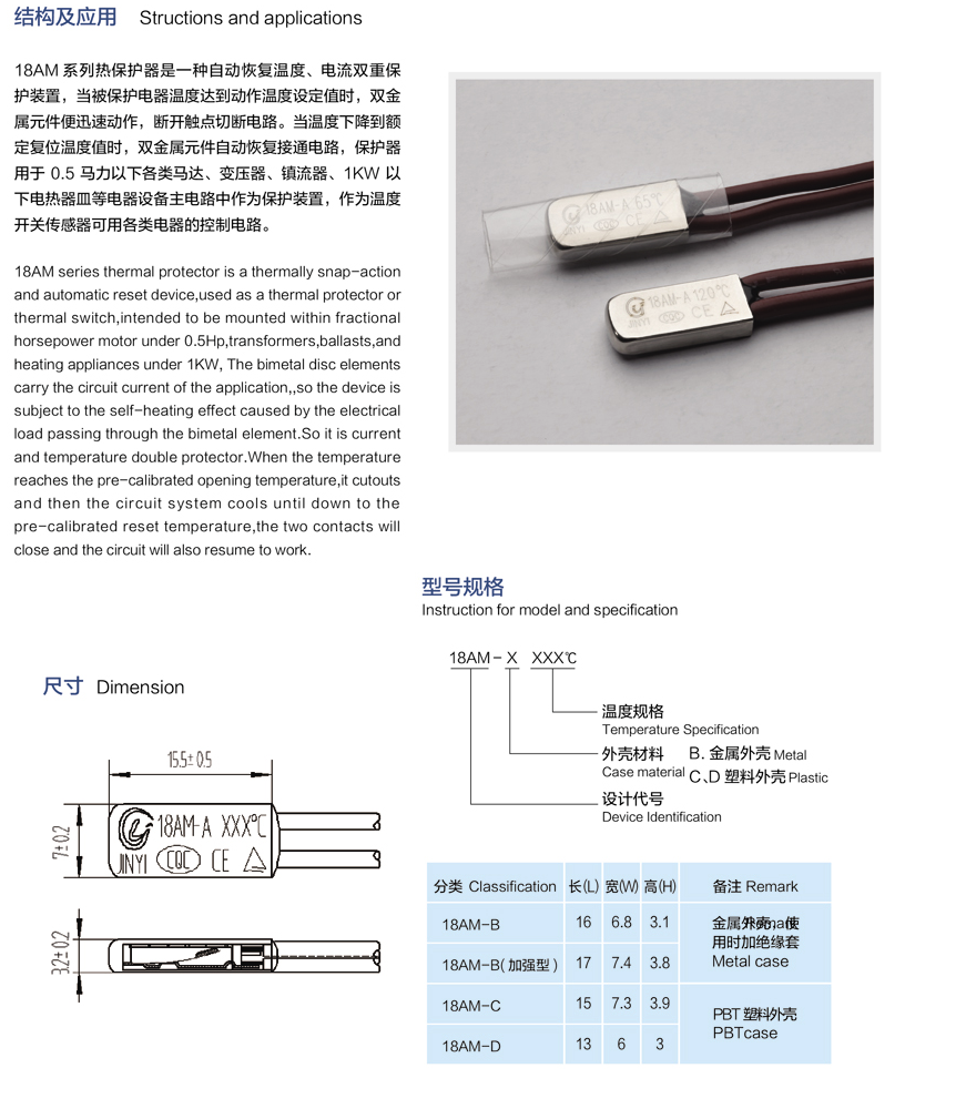 產(chǎn)品名稱: 18AM系類溫控器 18AM series thermal protector
