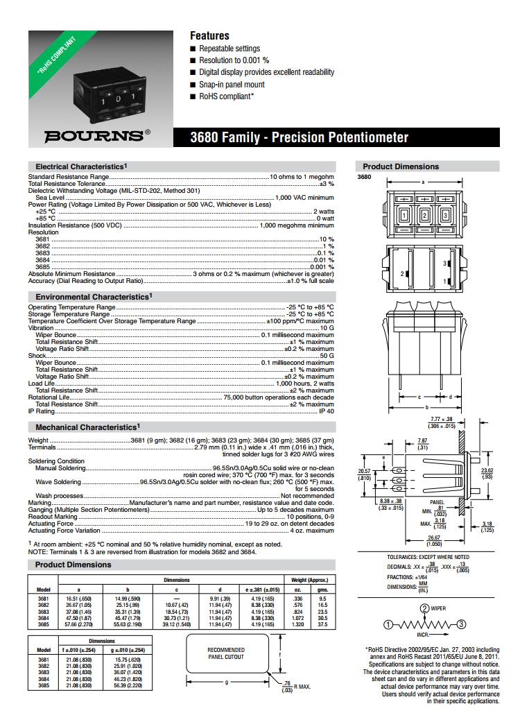 產(chǎn)品名稱: BOURNS多轉(zhuǎn)型精密電位器3680 Series