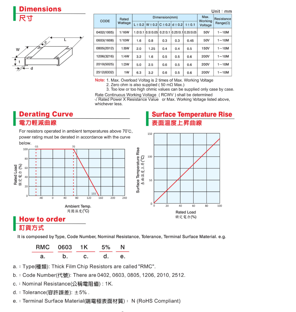 簡述: RMC 0402 RMC 1005 RMC 0603 RMC 1608 RMC 0805 RMC 2012 RMC1206 RMC 3216 RMC 2010 RMC 5025 RMC 2512 RMC 6332