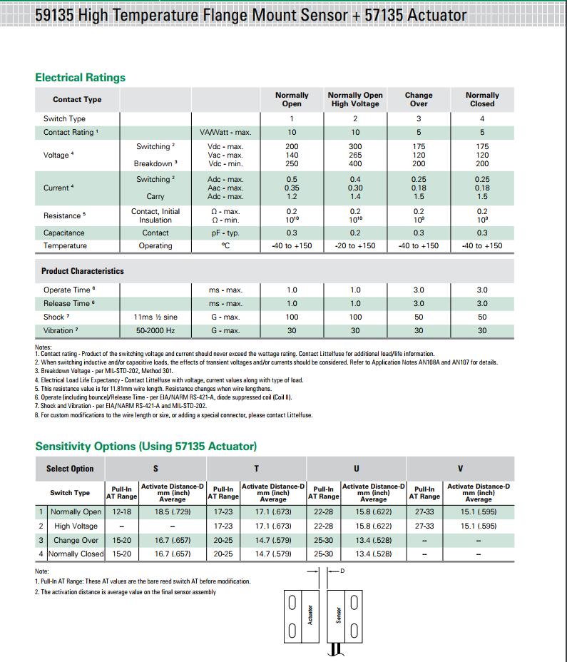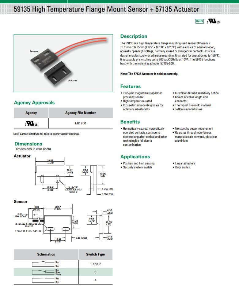 產品名稱: 59135 系列 - 高溫法蘭安裝式磁簧傳感器