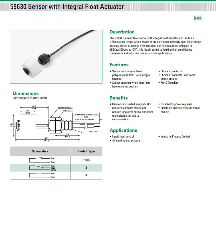 簡述: 59630 系列 - 帶浮動驅動器的磁簧液位傳感器