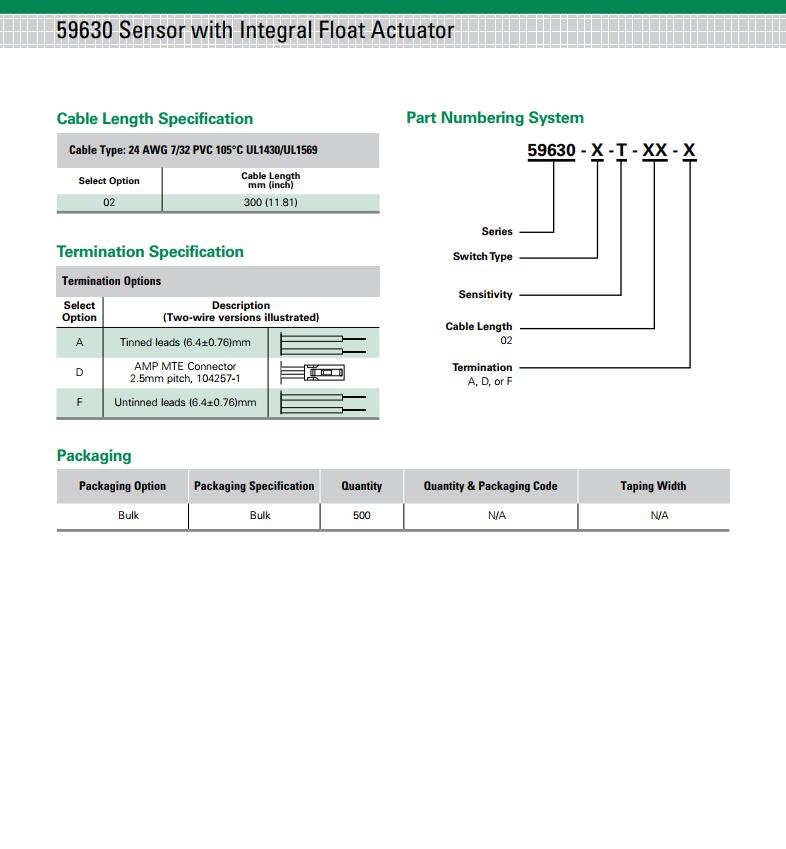 產品名稱: 59630 系列 - 帶浮動驅動器的磁簧液位傳感器