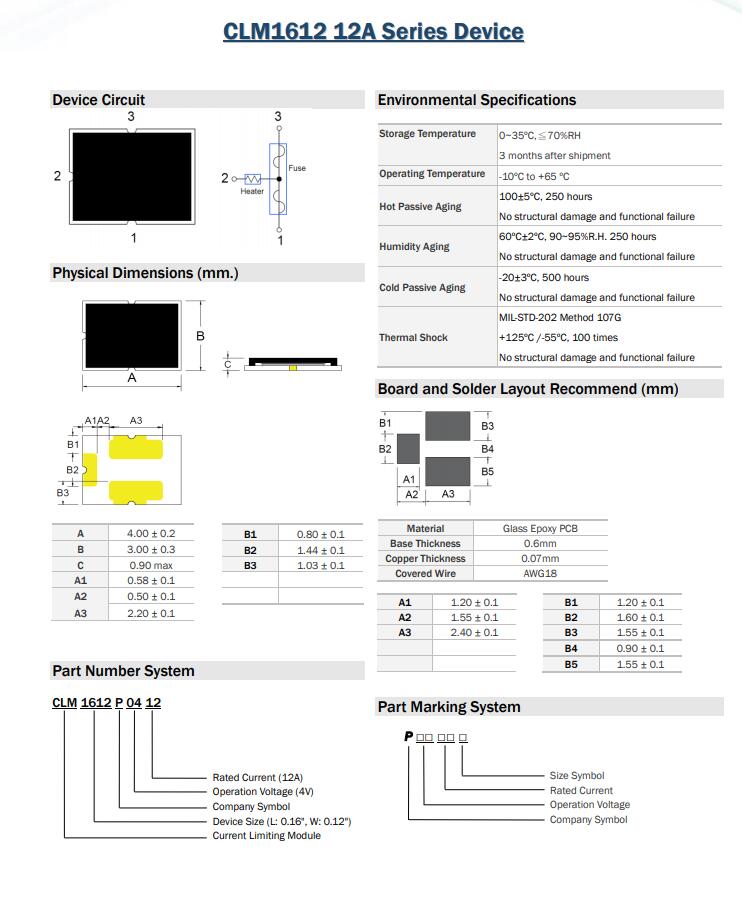 簡述: CLM1612 12A Series Device 三端保險絲